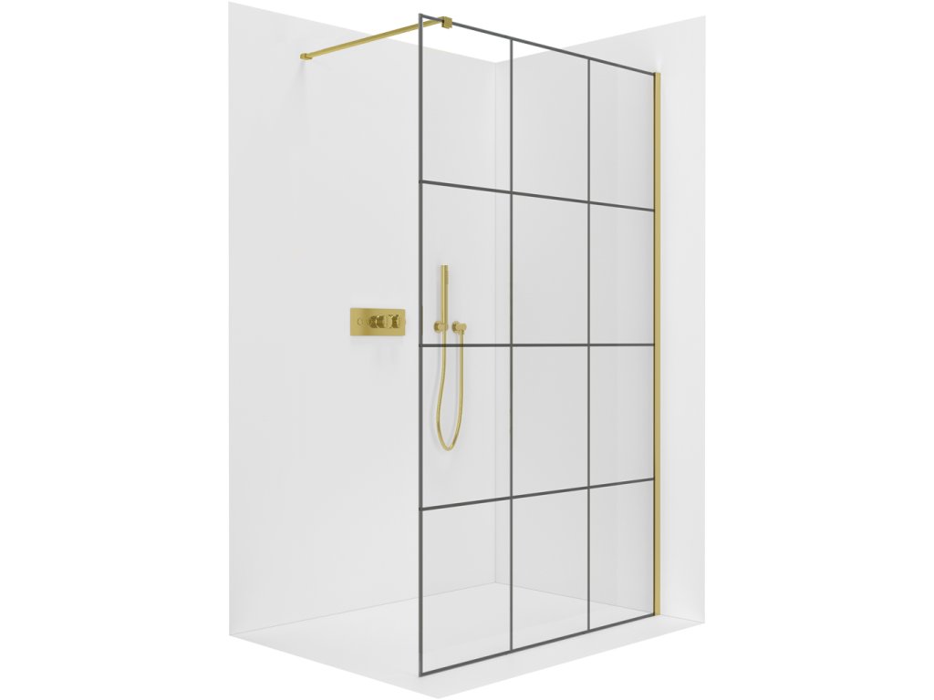 CERANO - Ścianka kabiny prysznicowej typu walk-in Onyx Cube L/P - 8 mm - wspornik kwadratowy - złoty, szkło industrialne - 90x200 cm