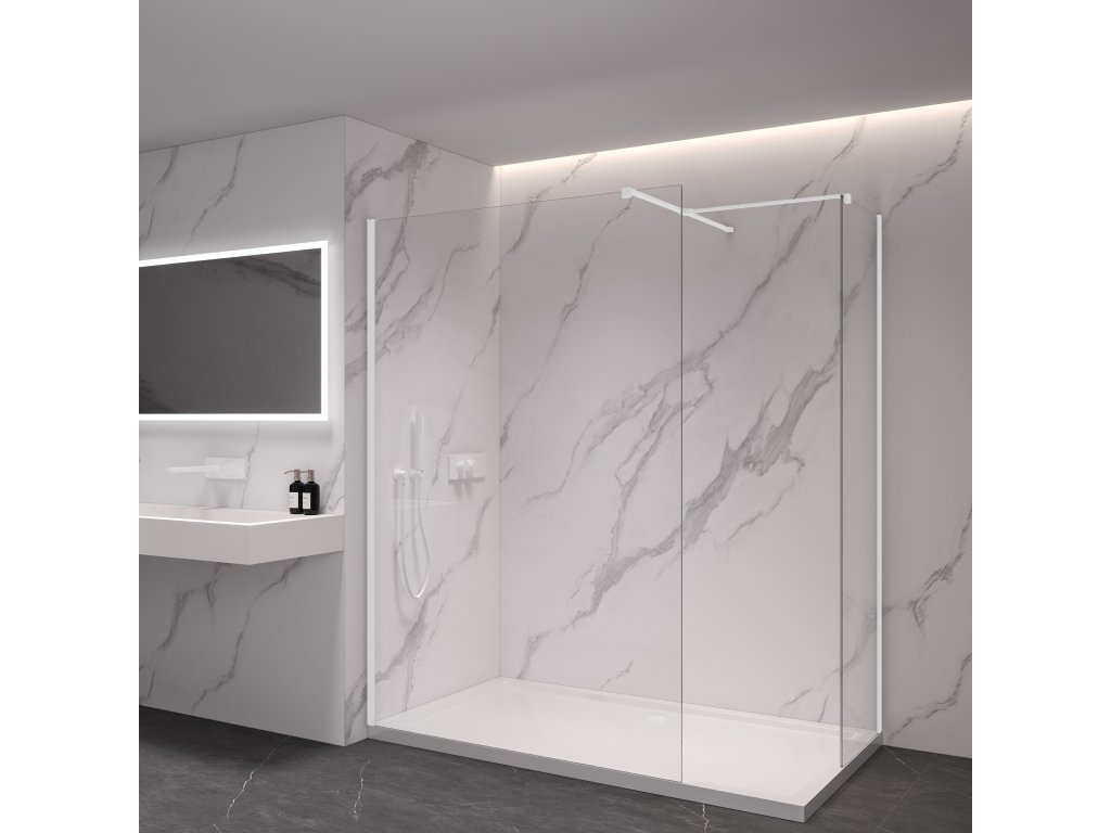 CERANO - Ścianka kabiny prysznicowej typu walk-in Onyx TL/P - 8 mm - wspornik kwadratowy - biały mat, szkło transparentne - 90x80x200 cm