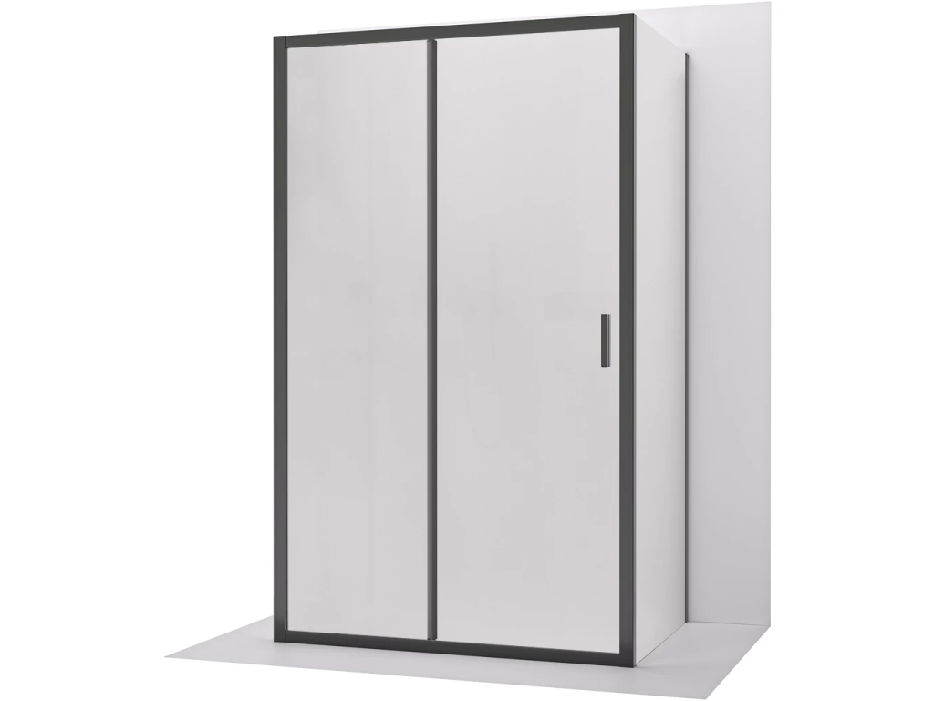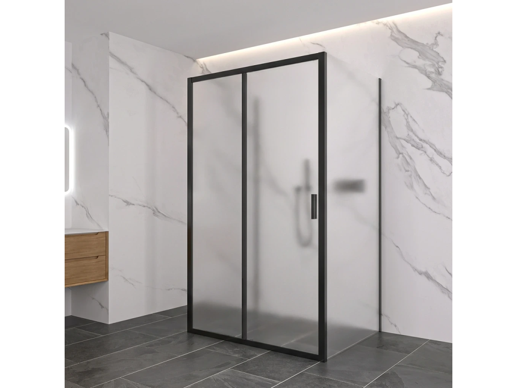 CERANO - Kabina prysznicowa trójścienna Varone LINE UL/P - 6 mm - matowa czarna, szkło mrożone - 110x90 cm - przesuwna