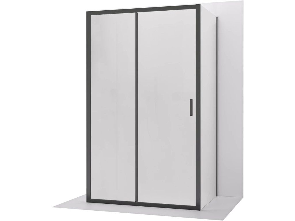 CERANO - Kabina prysznicowa trójścienna Varone LINE UL/P - 6 mm - matowa czarna, szkło mrożone - 120x90 cm - przesuwna