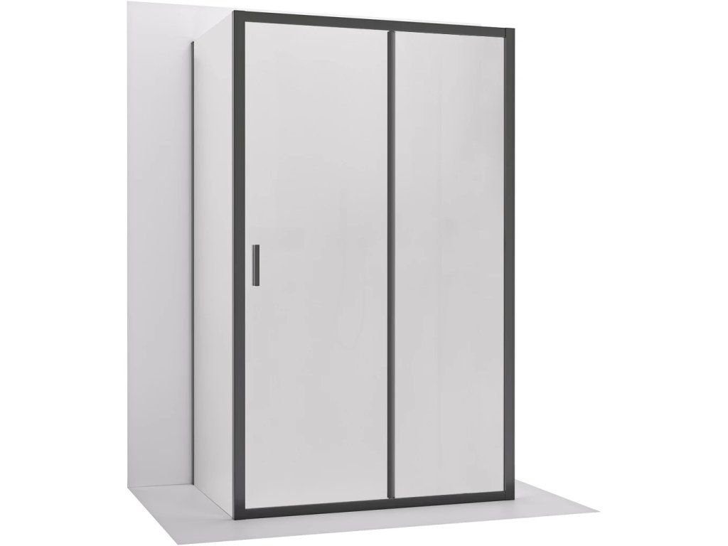 CERANO - Kabina prysznicowa trójścienna Varone LINE UL/P - 6 mm - matowa czarna, szkło mrożone - 140x80 cm - przesuwna