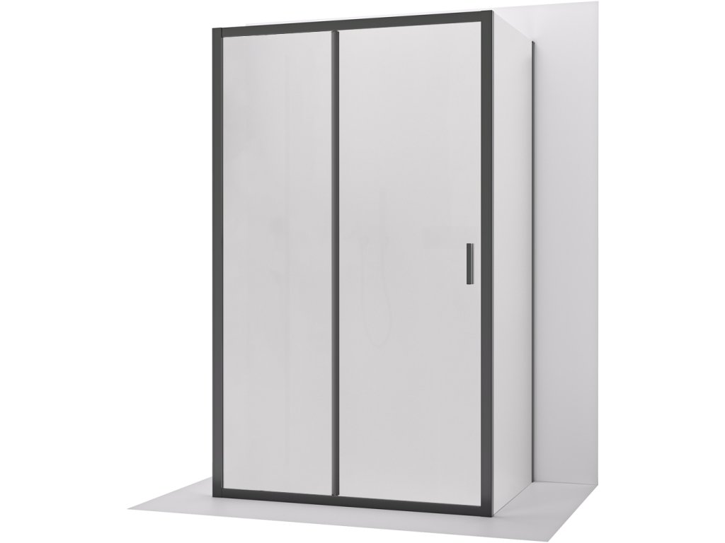 CERANO - Kabina prysznicowa trójścienna Varone LINE UL/P - 6 mm - matowa czarna, szkło mrożone - 130x90 cm - przesuwna