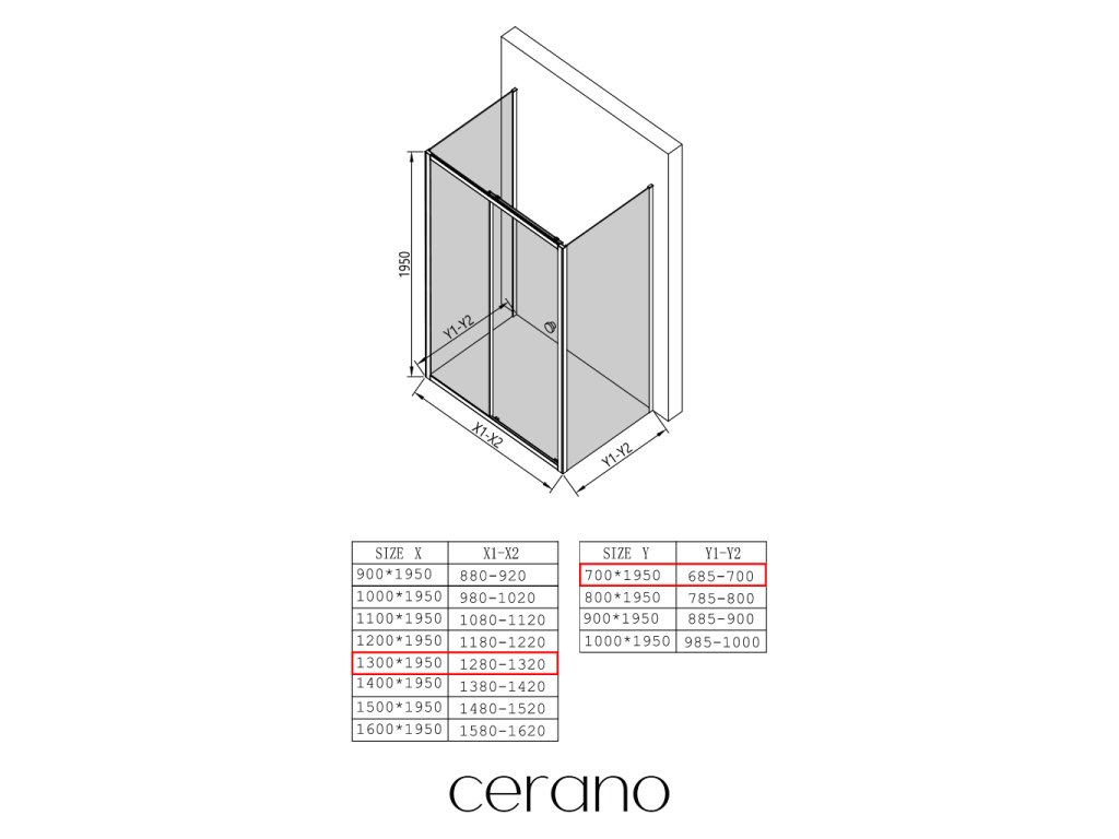 W ramach tej serii oferujemy szeroki wybór wymiarów, aby sprostać zróżnicowanym potrzebom naszych klientów. Wszystkie kabiny prysznicowe, drzwi i parawany CERANO są w pełni kompatybilne z brodzikami CERANO o tych samych wymiarach, co zapewnia bezproblemowy montaż i idealne dopasowanie. Ponadto kabinę można elastycznie zamontować – na pasującym brodziku lub bezpośrednio na podłodze, w zależności od preferencji i wyposażenia łazienki.