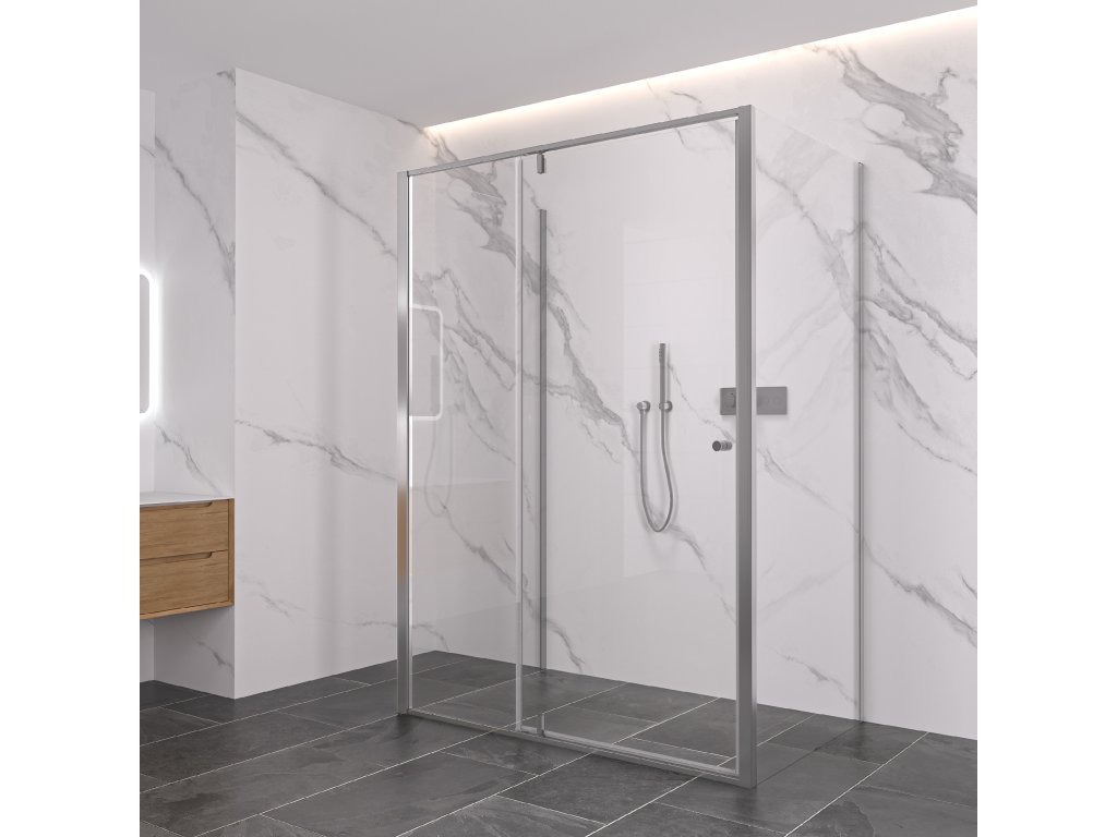 CERANO - Kabina prysznicowa trójścienna Santini UL/P - 6 mm - chrom, szkło transparentne - 140x90x195 cm - obrotowa