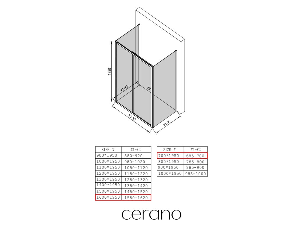 W ramach tej serii oferujemy szeroki wybór wymiarów, aby sprostać zróżnicowanym potrzebom naszych klientów. Wszystkie kabiny prysznicowe, drzwi i parawany CERANO są w pełni kompatybilne z brodzikami CERANO o tych samych wymiarach, co zapewnia bezproblemowy montaż i idealne dopasowanie. Ponadto kabinę można elastycznie zamontować – na pasującym brodziku lub bezpośrednio na podłodze, w zależności od preferencji i wyposażenia łazienki.