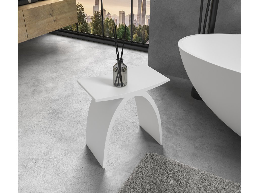 CERANO - Taboret łazienkowy z marmuru odlewanego Tara - biały mat - 43x43x23,5cm