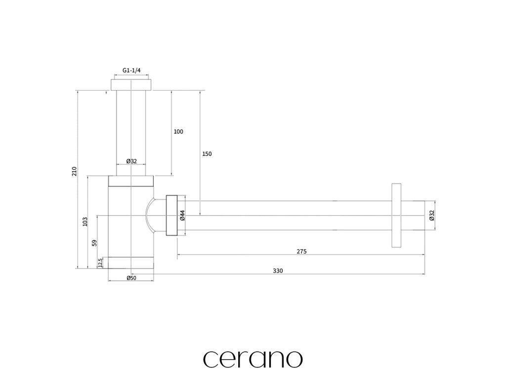 CERANO - Syfon umywalkowy - 5/4" - mosiądz - DN32/250 mm - matowy biały