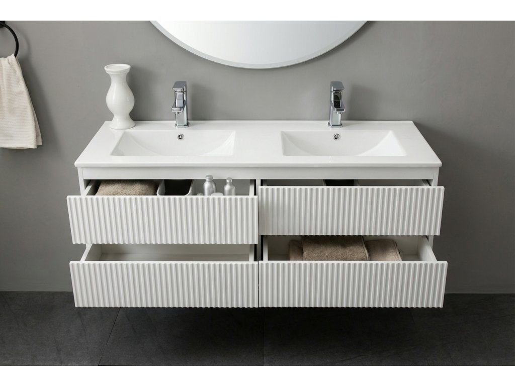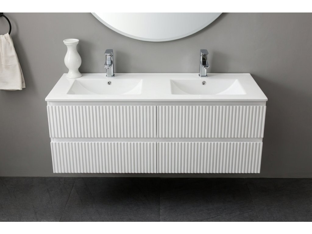 CERANO - Szafka łazienkowa pod umywalkę Carole - biała matowa ryflowana - 119x48x45 cm