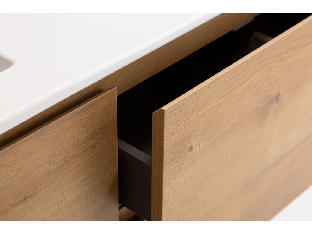 Bardzo praktyczne są dwie (cztery w przypadku większych rozmiarów) szuflady z pełnym wysuwem, wyposażone w samodomykające się prowadnice i tłumienie.