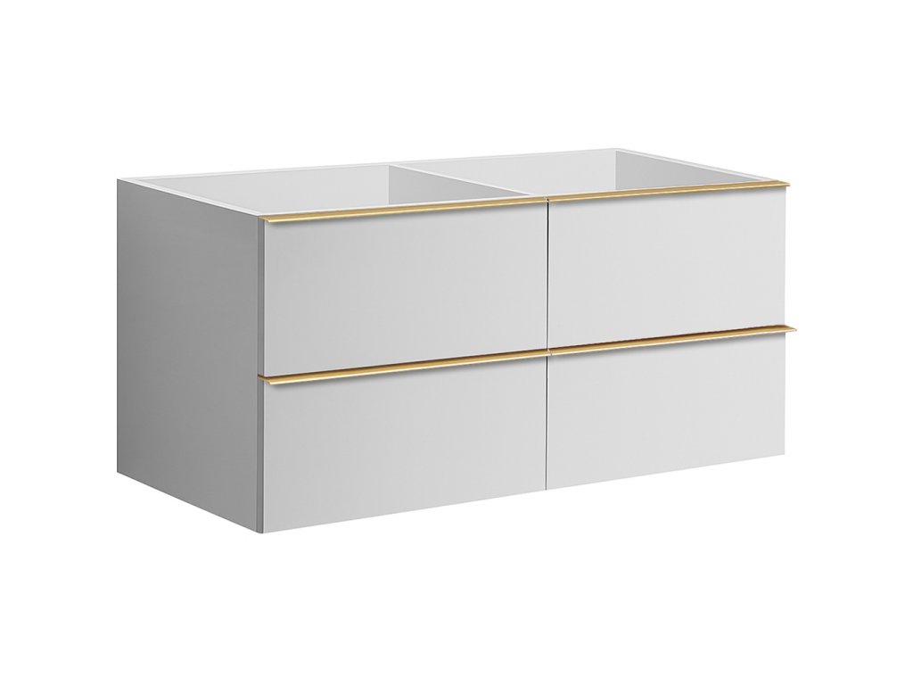 CERANO - Szafka łazienkowa pod umywalkę z uchwytem Velora - biały mat, uchwyt złoty - 138x53x45,2 cm