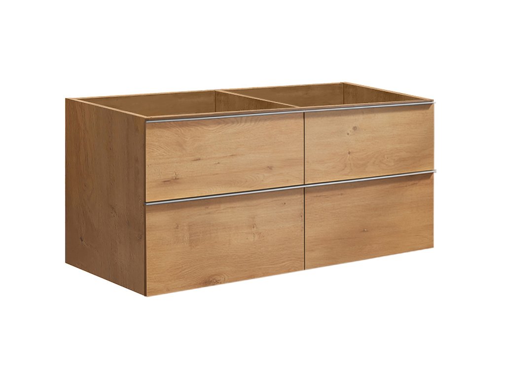 CERANO - Szafka łazienkowa pod umywalkę z uchwytem Velora - dąb miodowy, uchwyt chromowany - 119x49,8x45,2 cm
