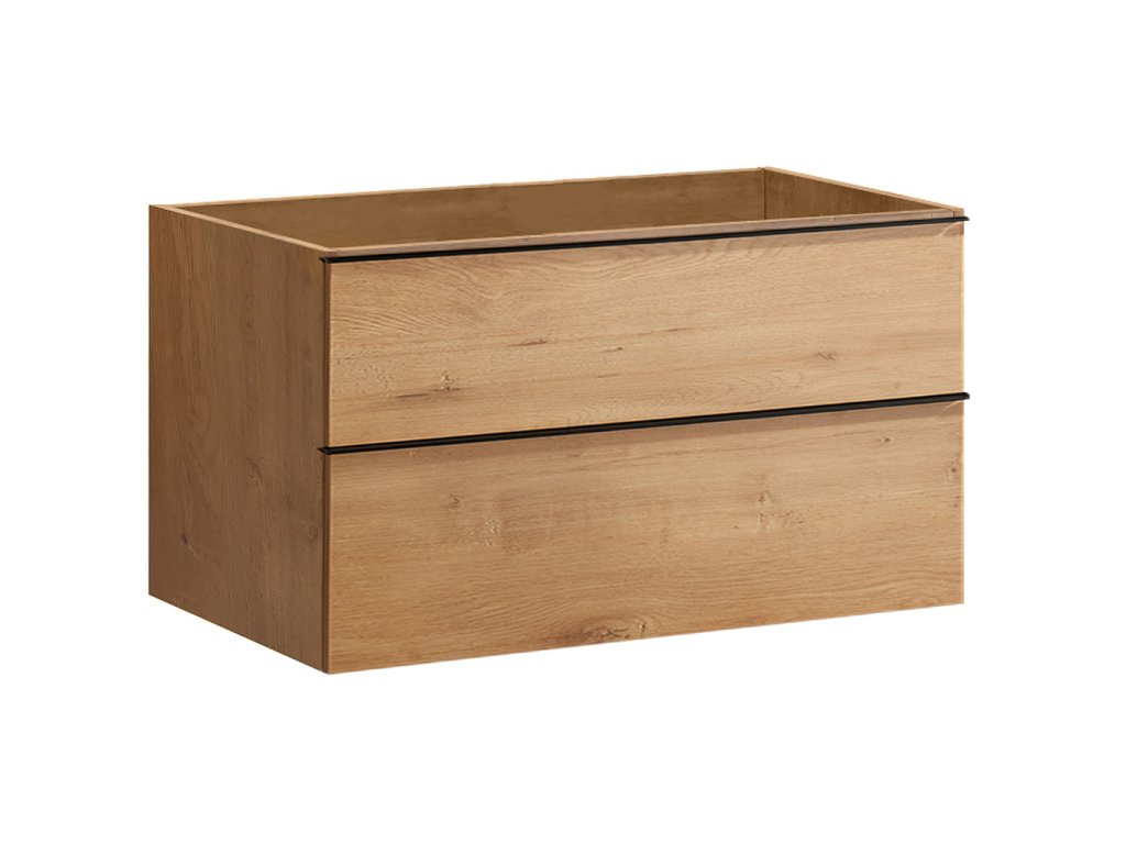 CERANO - Szafka łazienkowa pod umywalkę z uchwytem Velora - dąb miodowy, uchwyt czarny - 99x49,8x46 cm