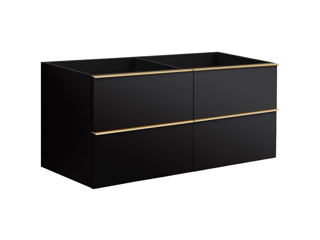 CERANO - Szafka łazienkowa pod umywalkę z uchwytem Velora - matowa czerń, uchwyt złoty - 119x53x45,2 cm