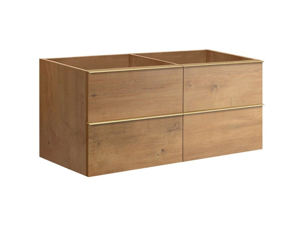 CERANO - Szafka łazienkowa pod umywalkę z uchwytem Velora - dąb miodowy, uchwyt złoty - 119x53x46,5 cm