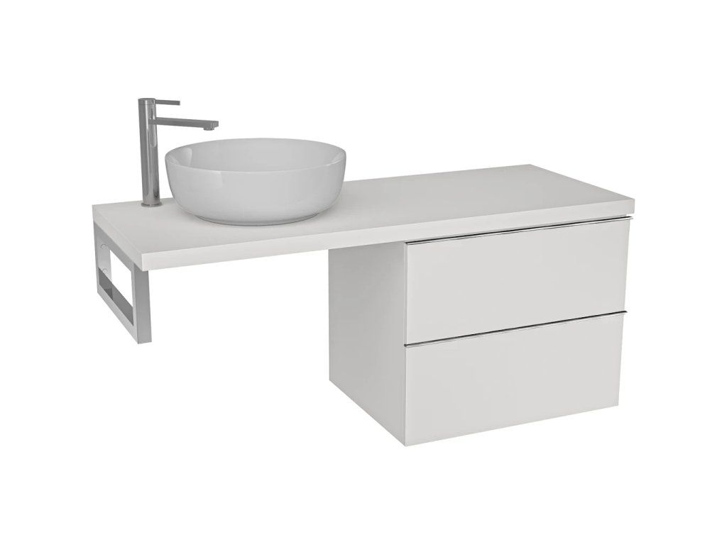 CERANO - Blat umywalkowy Navira Pro - 141x46,5x3,6 cm - Szafka Velora 69 cm - biały mat, uchwyt chromowany - konsola chromowana
