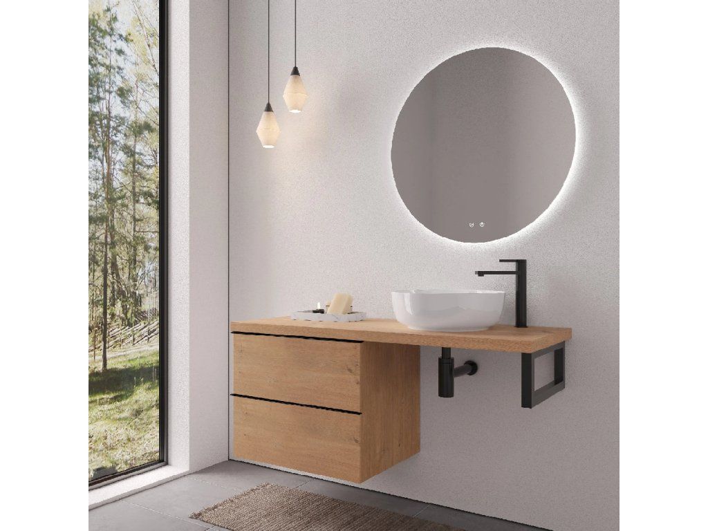CERANO - Blat umywalkowy Navira Pro - 141x46,5x3,6 cm - Szafka Velora 69 cm - dąb miodowy, uchwyt czarny - konsola czarna