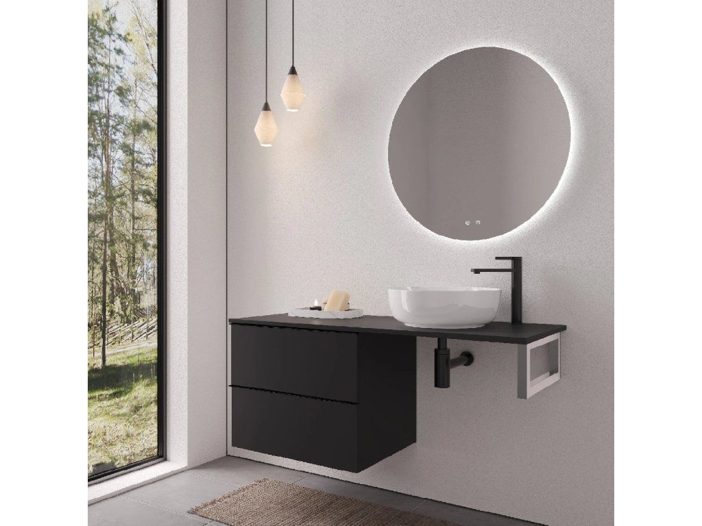 CERANO - Blat umywalkowy Navira Slim - 121x46,5x1,8 cm - Szafka Velora 59 cm - matowa czerń, uchwyt czarny - konsola chromowana