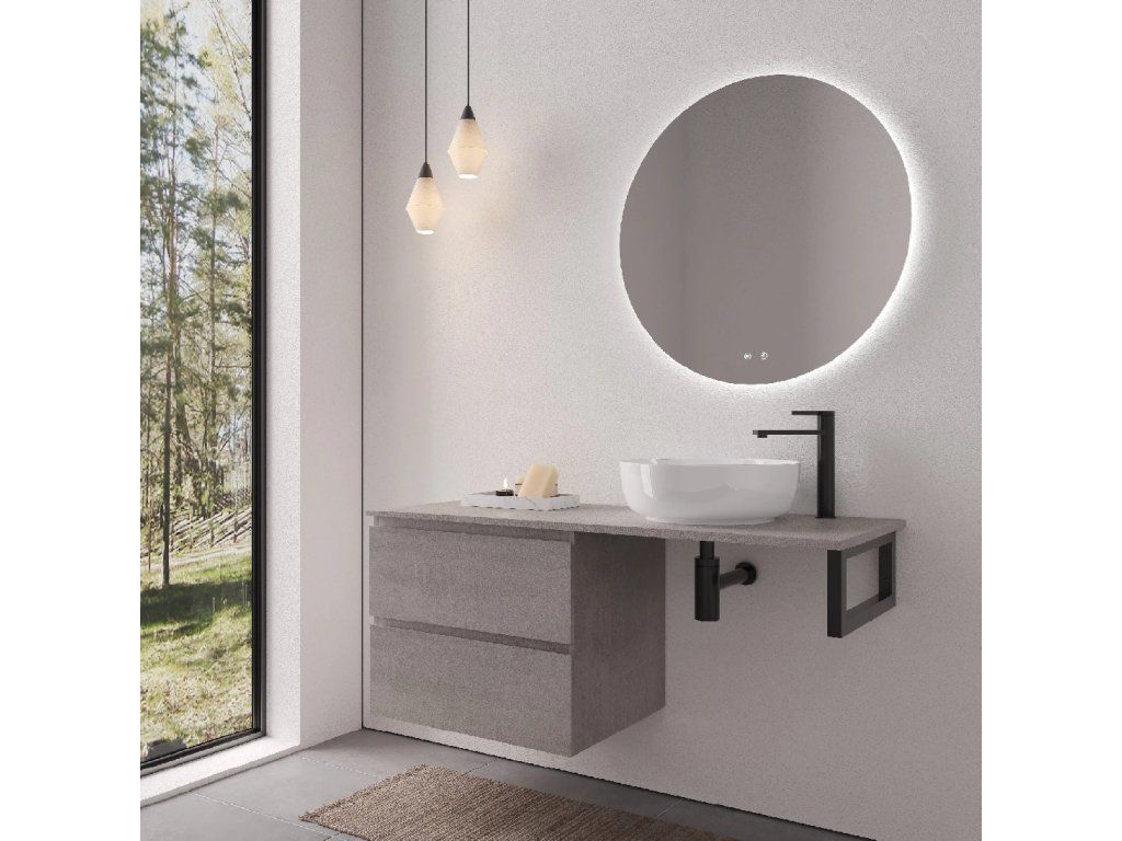 CERANO - Blat umywalkowy Navira Slim - 141x46,5x1,8 cm - Szafka Carole 69 cm - Betonowo-szary - Konsola czarna