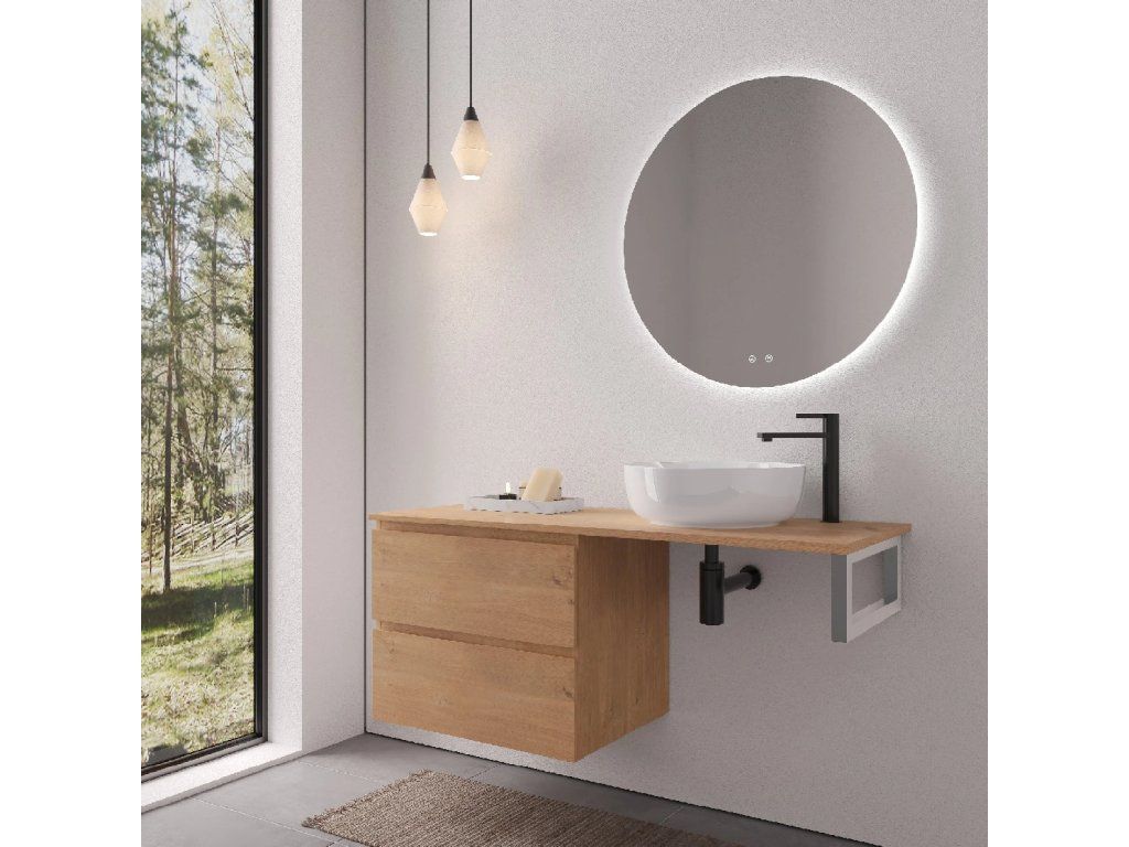CERANO - Blat umywalkowy Navira Slim - 141x46,5x1,8 cm - Szafka Carole 69 cm - dąb miodowy - konsola chromowana