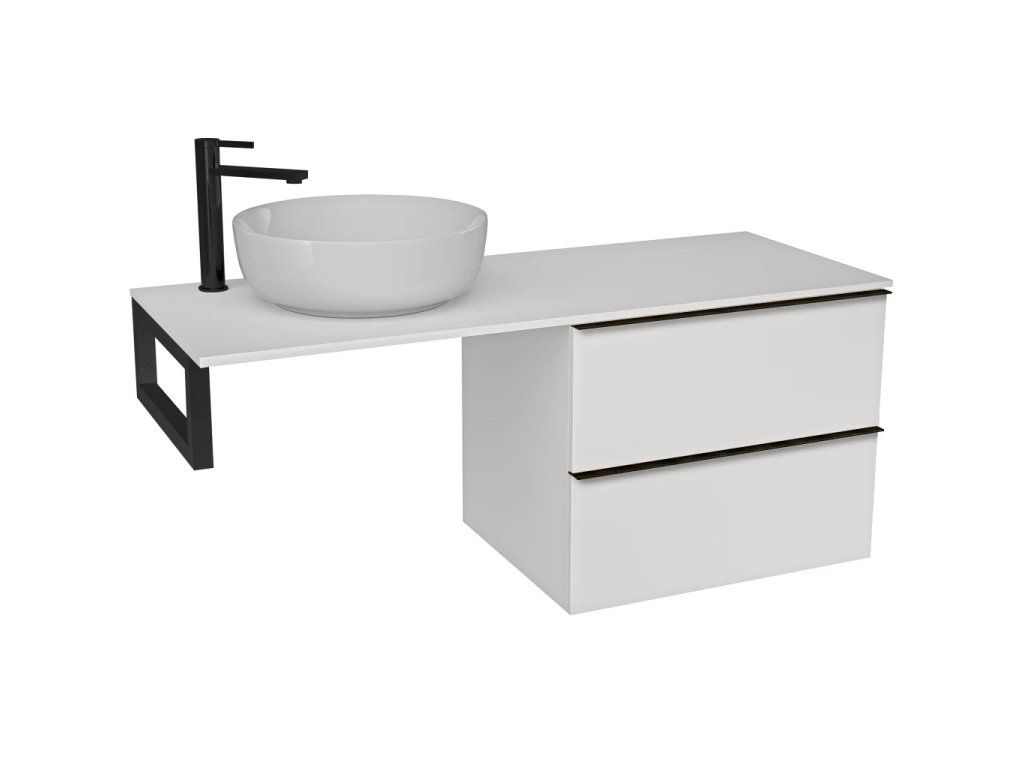 CERANO - Blat umywalkowy Navira Slim - 141x46,5x1,8 cm - Szafka Velora 69 cm - matowa biel, czarny uchwyt - czarna konsola