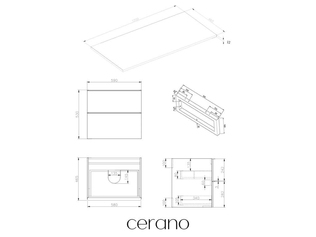 CERANO - Blat umywalkowy z lanego marmuru Elanys - 120x46,5x1,2 cm - Szafka Velora 59 cm - dąb miodowy, uchwyt czarny - konsola czarna
