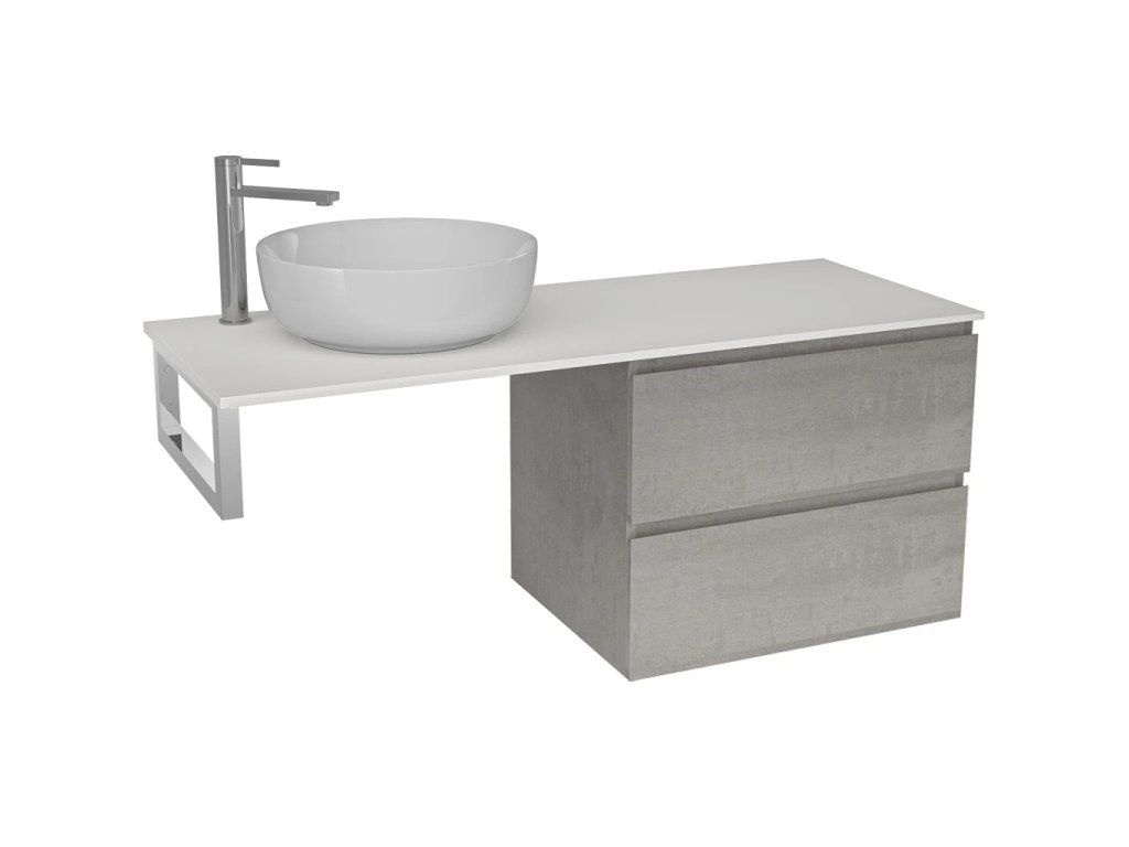 CERANO - Blat z lanego marmuru Elanys - 140x46,5x1,2 cm - Szafka Carole 69 cm - szary beton - konsola chromowana