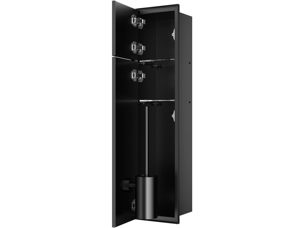 CERANO - Szafka na papier toaletowy Inova podtynkowa - do wyłożenia płytkami - 2 półki - matowa czerń - 78,2x19,6x16 cm