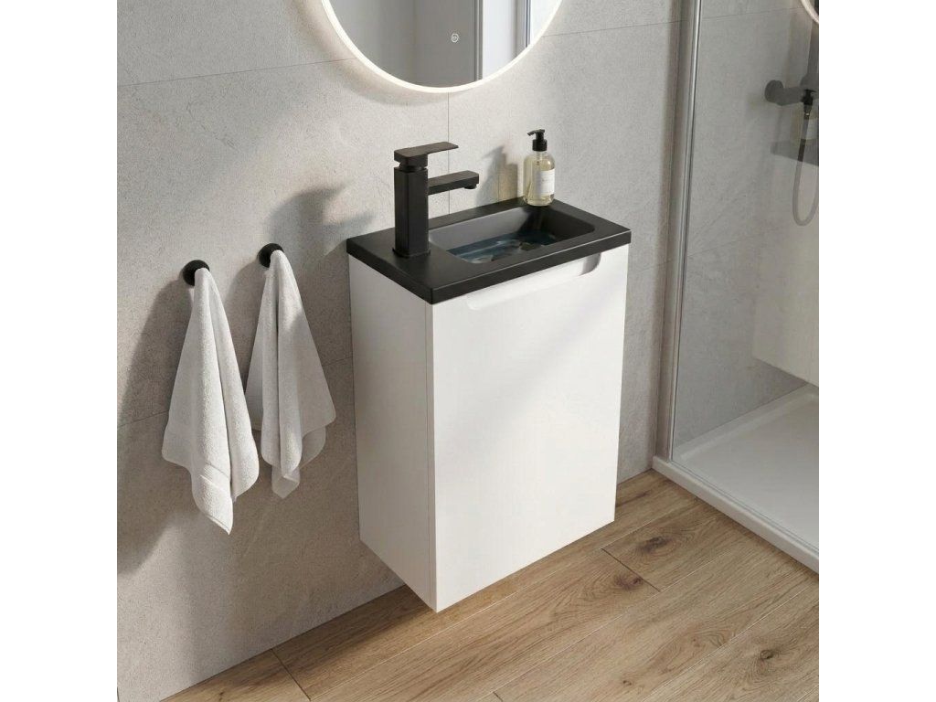 CERANO - Szafka pod umywalkę Sora WC - biały mat + podświetlana umywalka marmurowa - czarny mat - 40x57,5x22 cm