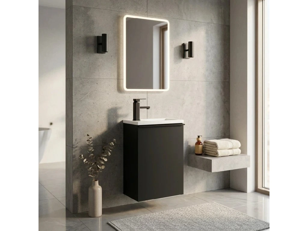 CERANO - Szafka pod umywalkę Zola WC - czarny mat + umywalka z podświetlanego marmuru - biały mat - 40x23,5x61,5 cm