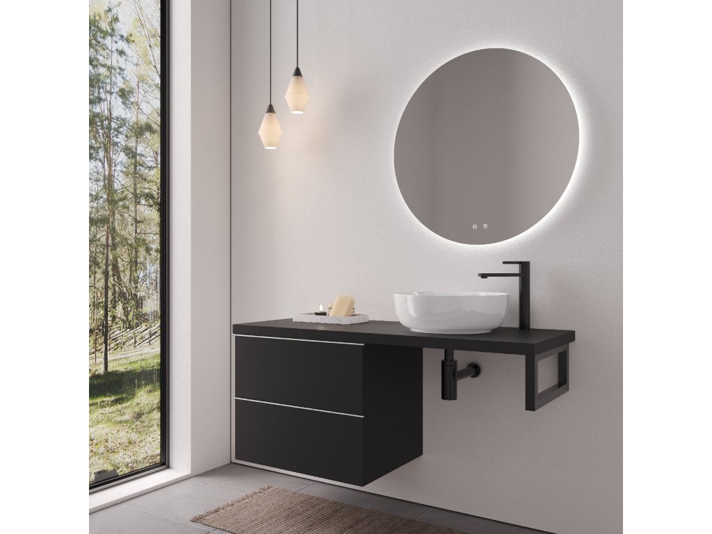 CERANO - Blat umywalkowy Navira Pro - 121x46,5x3,6 cm - Szafka Velora 59 cm - matowa czerń, chromowany uchwyt - czarna konsola