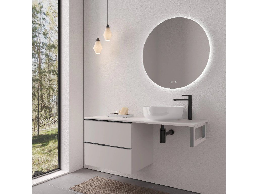 CERANO - Blat umywalkowy Navira Slim - 121x46,5x1,8 cm - Szafka Velora 59 cm - matowa biel, czarny uchwyt - chromowana konsola