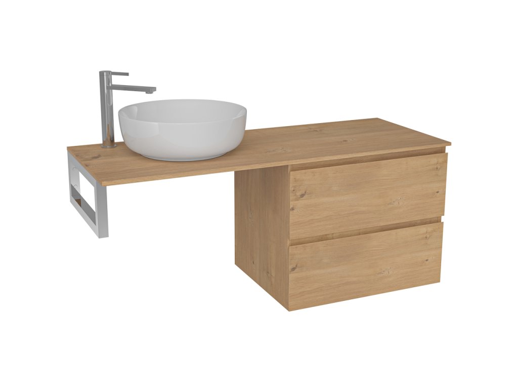 CERANO - Blat umywalkowy Navira Slim - 141x46,5x1,8 cm - Szafka Carole 69 cm - dąb miodowy - konsola chromowana