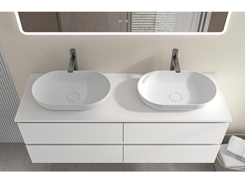 CERANO - Szafka łazienkowa Carole z blatem umywalkowym - 18 mm - biały mat - 140x49,8x46,5 cm