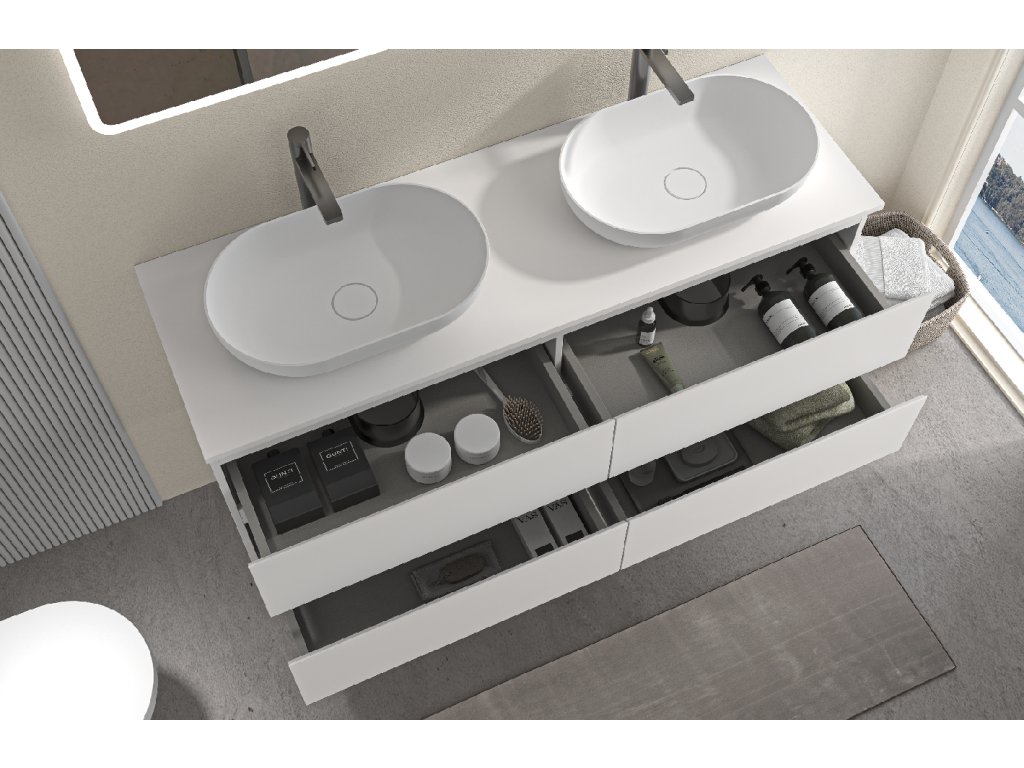 CERANO - Szafka łazienkowa Carole z blatem umywalkowym - 18 mm - biały mat - 141x49,8x46,5 cm