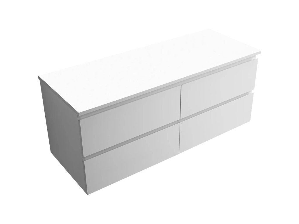 CERANO - Szafka łazienkowa Carole z blatem umywalkowym - 18 mm - biały mat - 160x49,8x46,5 cm
