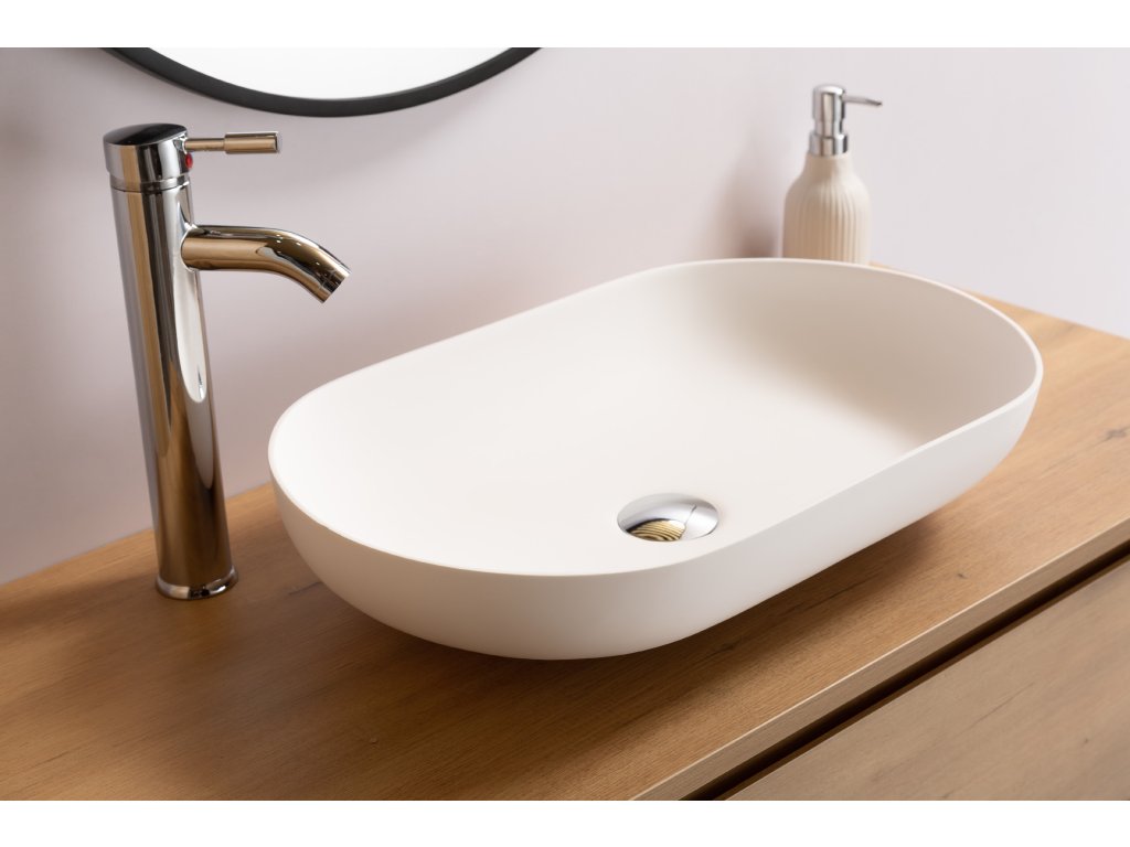 Szafki łazienkowe wykonane są z laminatu MDF (płyty pilśniowej średniej gęstości) pokrytego folią melaminową, która jest odporna na wilgoć, zarysowania, promieniowanie UV i powszechnie stosowane środki czyszczące. Powierzchnia jest gładka, twarda, jednorodna i łatwa w czyszczeniu. Płyty MDF nie odkształcają się jak lite drewno. Uszkodzenie mechaniczne laminatu może prowadzić do zawilgocenia rdzenia MDF.