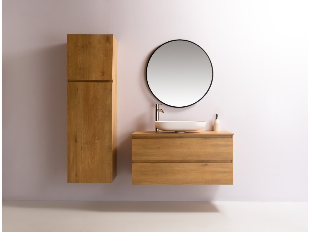 CERANO - Szafka łazienkowa Carole z blatem umywalkowym - 18 mm - dąb miodowy - 101x49,8x46,5 cm