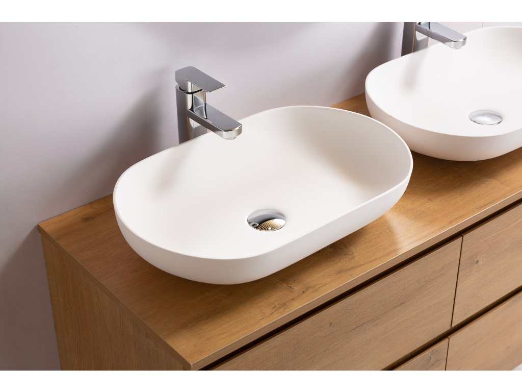 Szafki łazienkowe wykonane są z laminatu MDF (płyty pilśniowej średniej gęstości) pokrytego folią melaminową, która jest odporna na wilgoć, zarysowania, promieniowanie UV i powszechnie stosowane środki czyszczące. Powierzchnia jest gładka, twarda, jednorodna i łatwa w czyszczeniu. Płyty MDF nie odkształcają się jak lite drewno. Uszkodzenie mechaniczne laminatu może prowadzić do zawilgocenia rdzenia MDF.