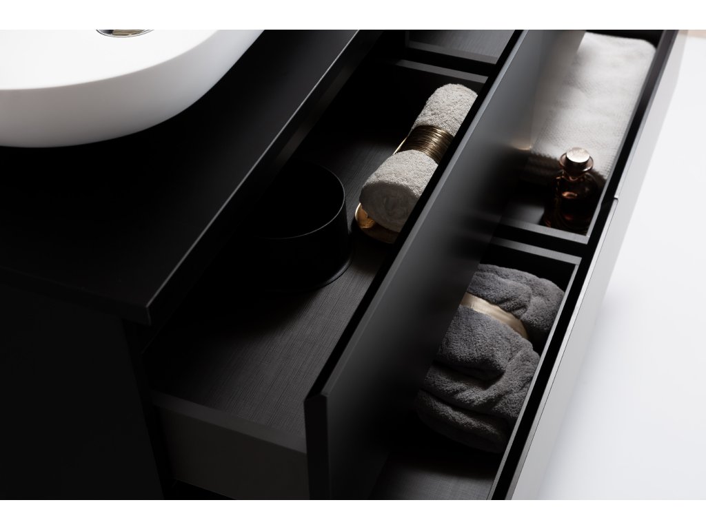 CERANO - Szafka łazienkowa Carole z blatem umywalkowym - 18 mm - matowa czerń - 141x49,8x46,5 cm