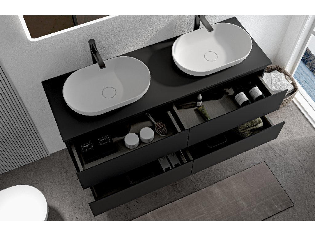 CERANO - Szafka łazienkowa Carole z blatem umywalkowym - 18 mm - matowa czerń - 161x49,8x46,5 cm