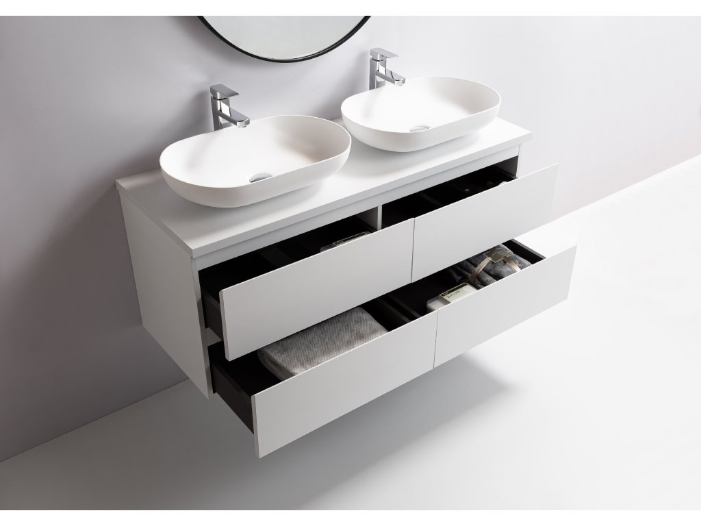 CERANO - Szafka łazienkowa Carole z blatem umywalkowym - 36 mm - biały mat - 161x51,6x46,5 cm