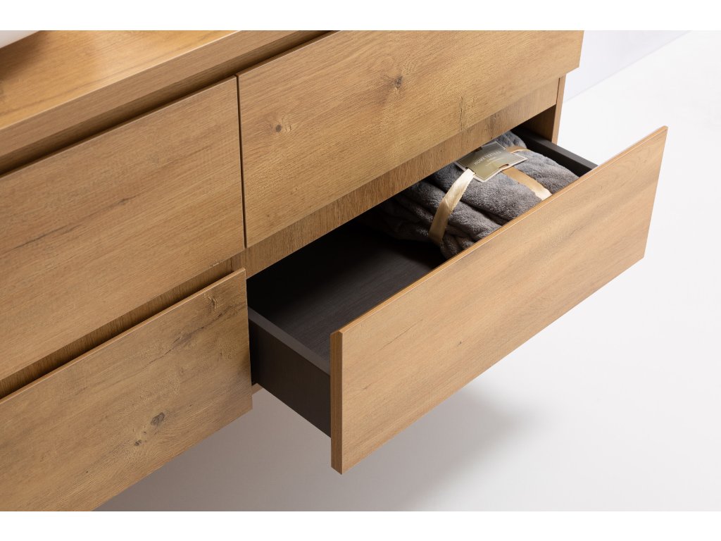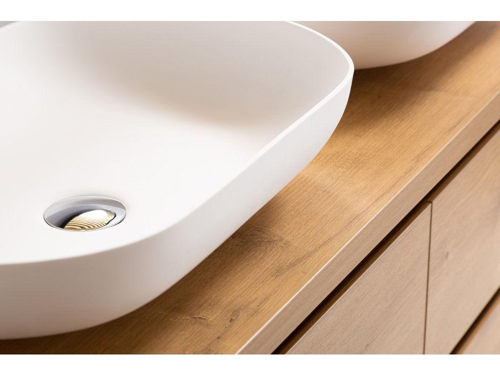 CERANO - Szafka łazienkowa Carole z blatem umywalkowym - 36 mm - dąb miodowy - 121x51,6x46,5 cm