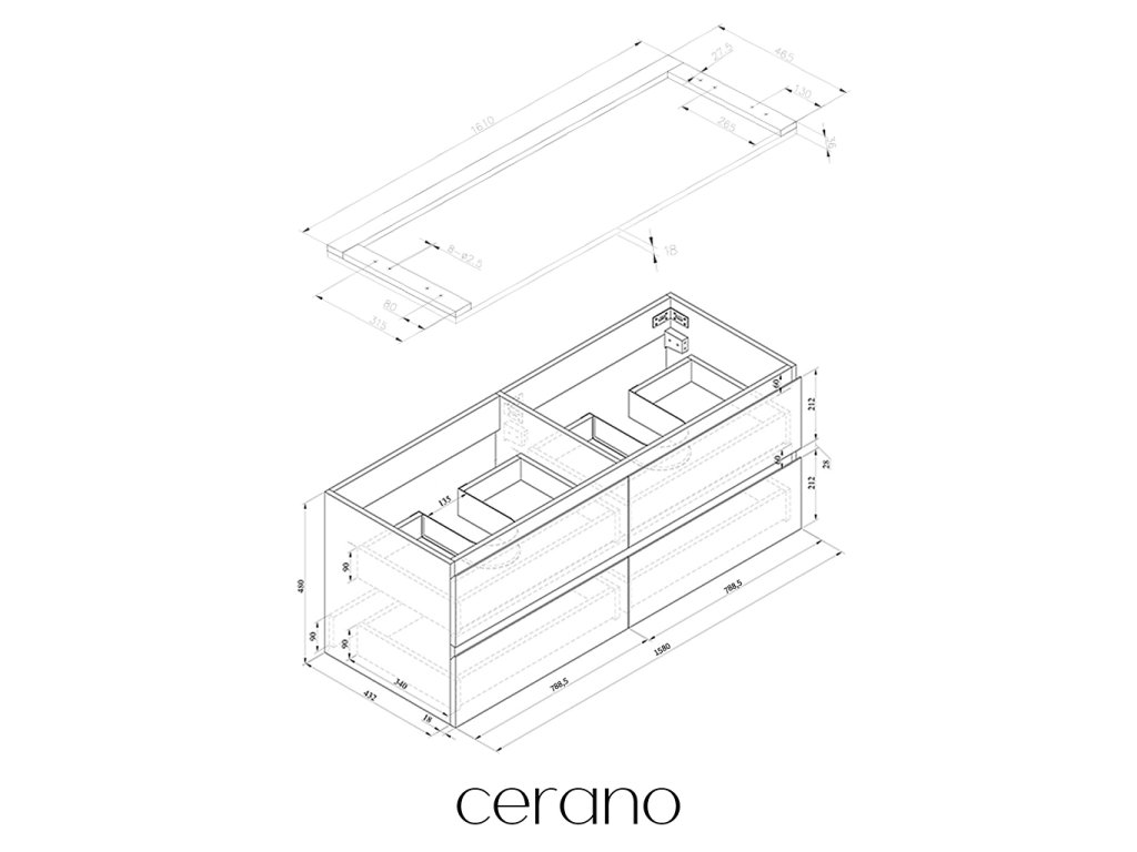 Oferujemy szeroki wybór rozmiarów w tej serii, aby sprostać zróżnicowanym potrzebom naszych klientów. Wszystkie szafki łazienkowe Cerano są zaprojektowane tak, aby były w pełni kompatybilne z blatami i umywalkami Cerano o tych samych wymiarach , co zapewnia bezproblemowy montaż i idealne dopasowanie.