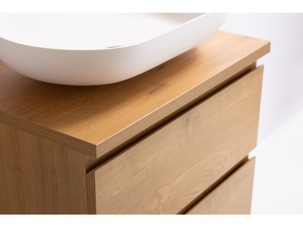 CERANO - Szafka łazienkowa Carole z blatem umywalkowym - 36 mm - dąb miodowy - 71x51,6x46,5 cm