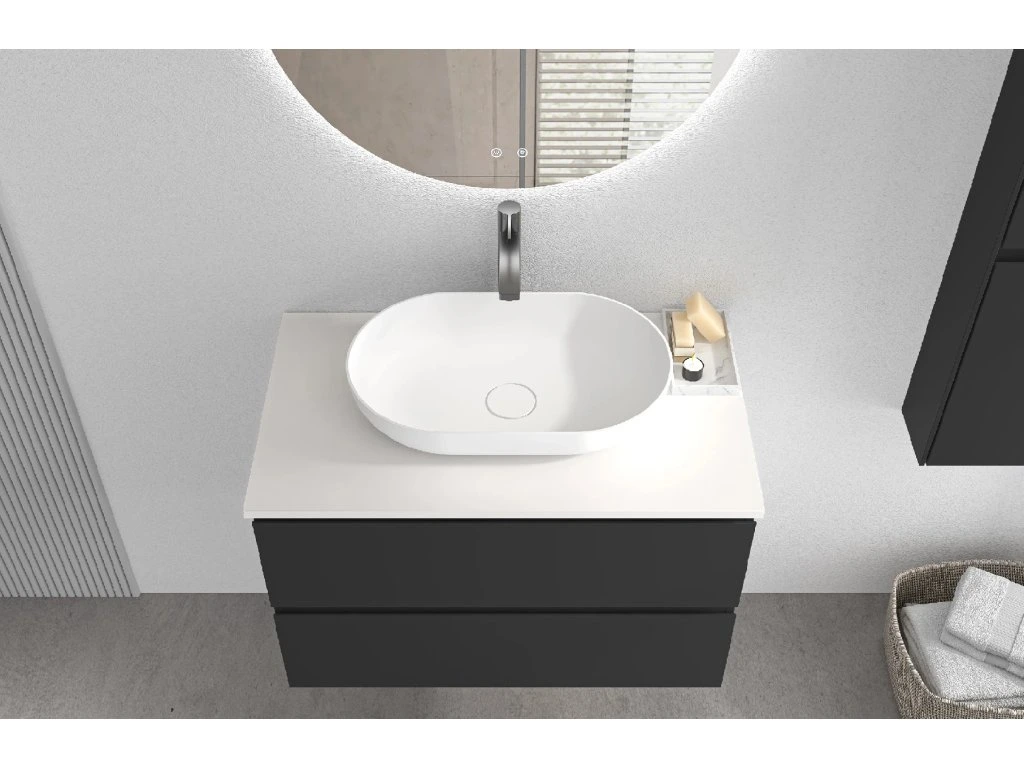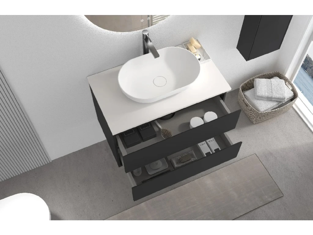 CERANO - Szafka łazienkowa Carole z blatem umywalkowym z lanego marmuru Elanys - 12 mm - czarny mat - 70x49,8x46,5 cm