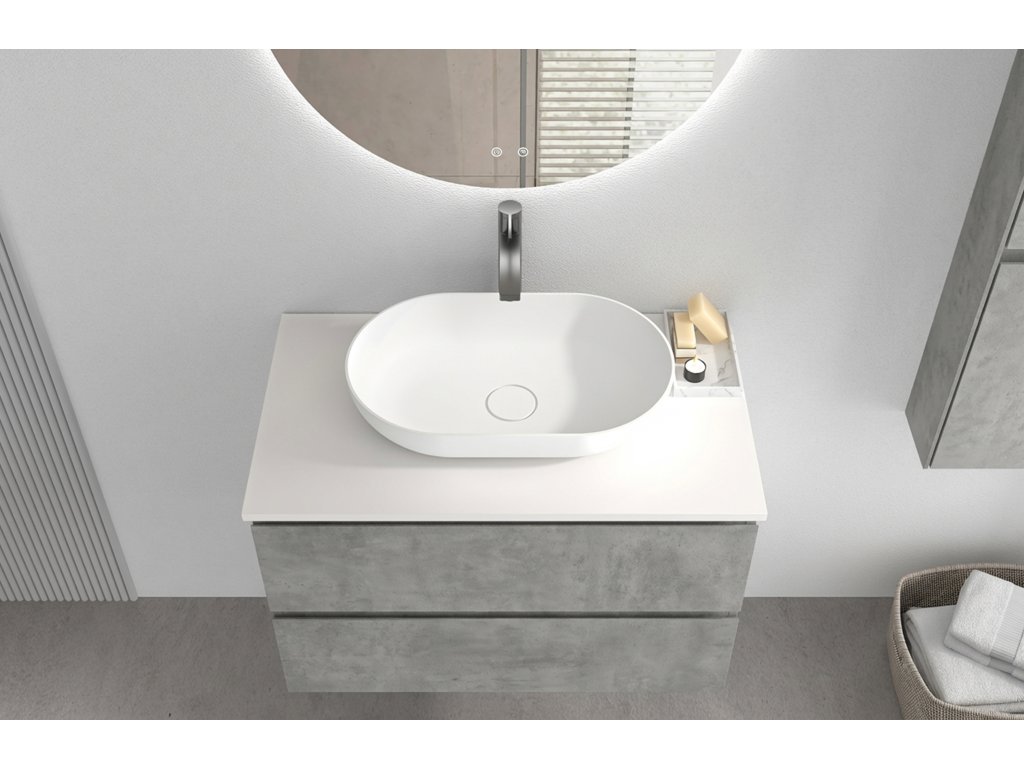 CERANO - Szafka łazienkowa Carole z blatem umywalkowym z lanego marmuru Elanys - 12 mm - szary beton - 70x49,8x46,5 cm