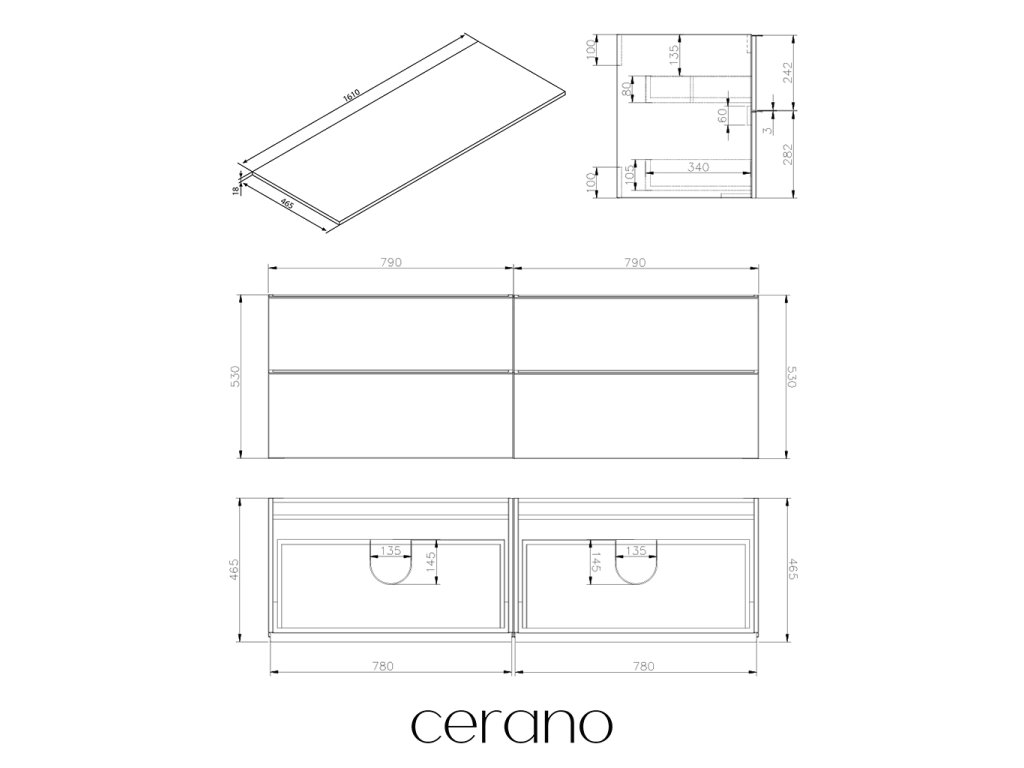CERANO - Szafka łazienkowa pod umywalkę z uchwytem/blatem Velora - 18 mm - biały mat, uchwyt czarny - 158x53x45,2 cm
