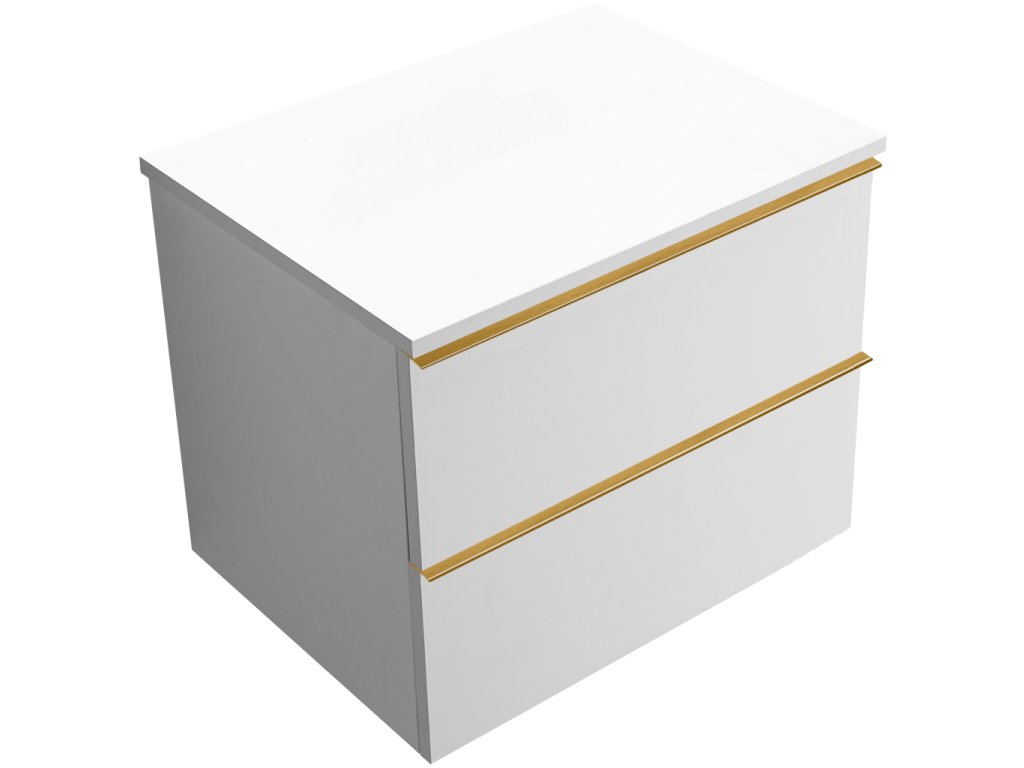 CERANO - Szafka łazienkowa pod umywalkę z uchwytem/blatem Velora - 18 mm - biały mat, uchwyt złoty - 59x49,8x46 cm