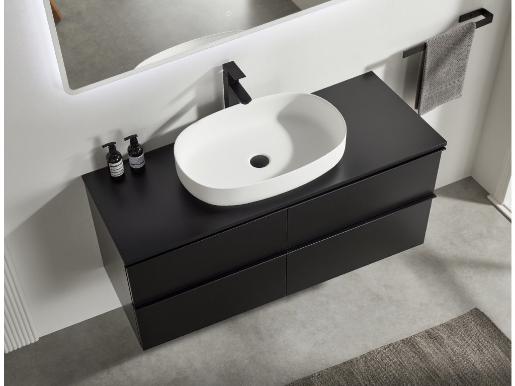 CERANO - Szafka łazienkowa pod umywalkę z uchwytem/blatem Velora - 18 mm - matowa czerń, uchwyt czarny - 119x53x45,2 cm