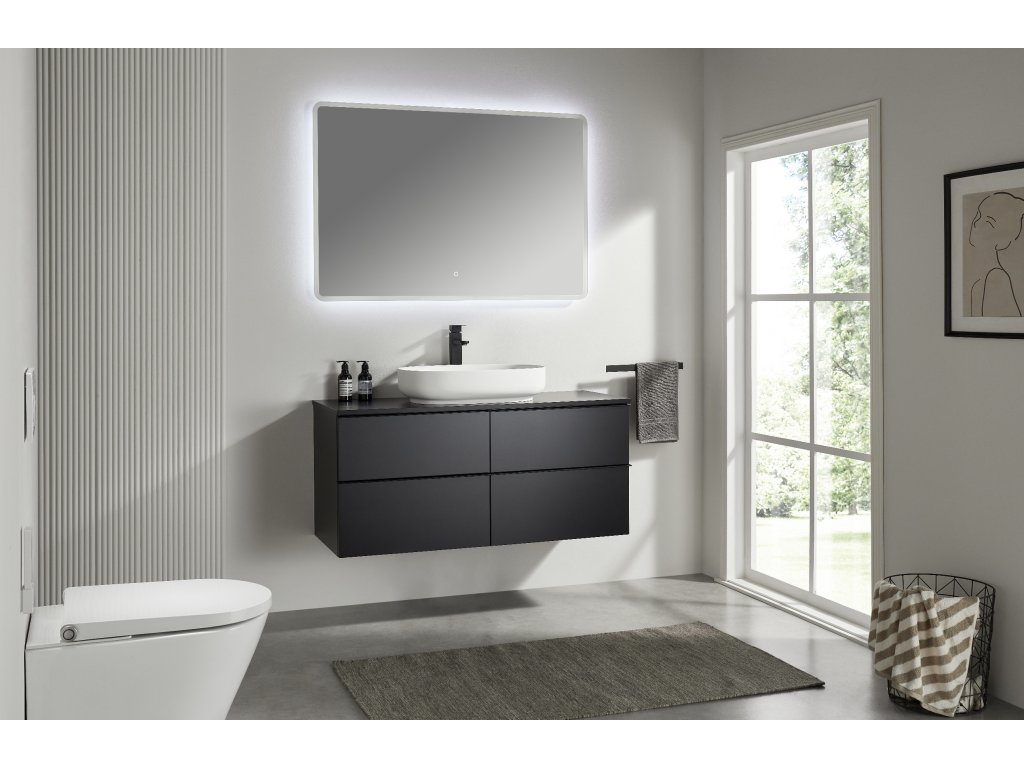 CERANO - Szafka łazienkowa pod umywalkę z uchwytem/blatem Velora - 18 mm - matowa czerń, uchwyt czarny - 158x53x45,2 cm